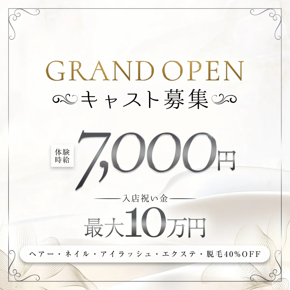 | 体験入店 | 時給5,500円~7,000円 |